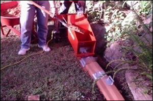 The concrete is wheeled to the Zippykerb, fed into the machine and extruded into a beautiful continuous border for your landscaped area.